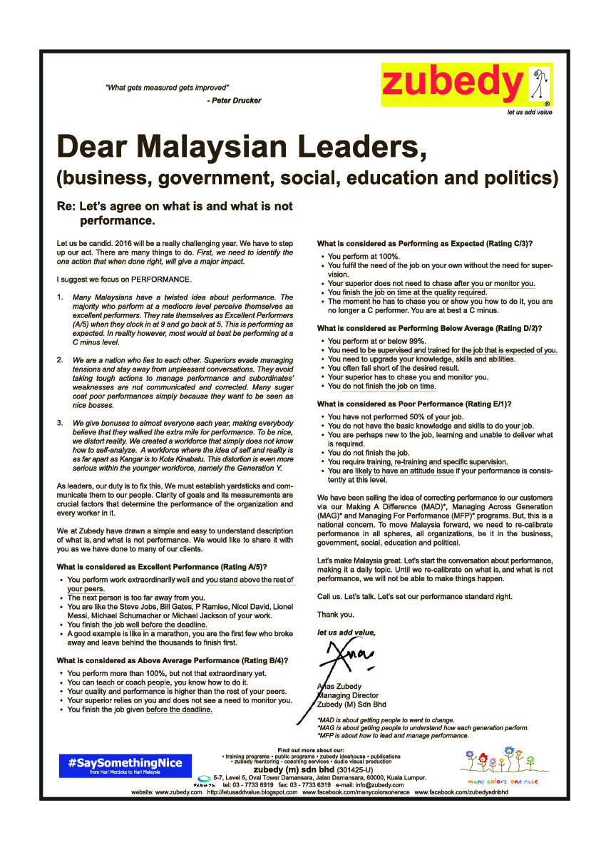 Malaysians have a twisted idea about performance. The majority who perform at a